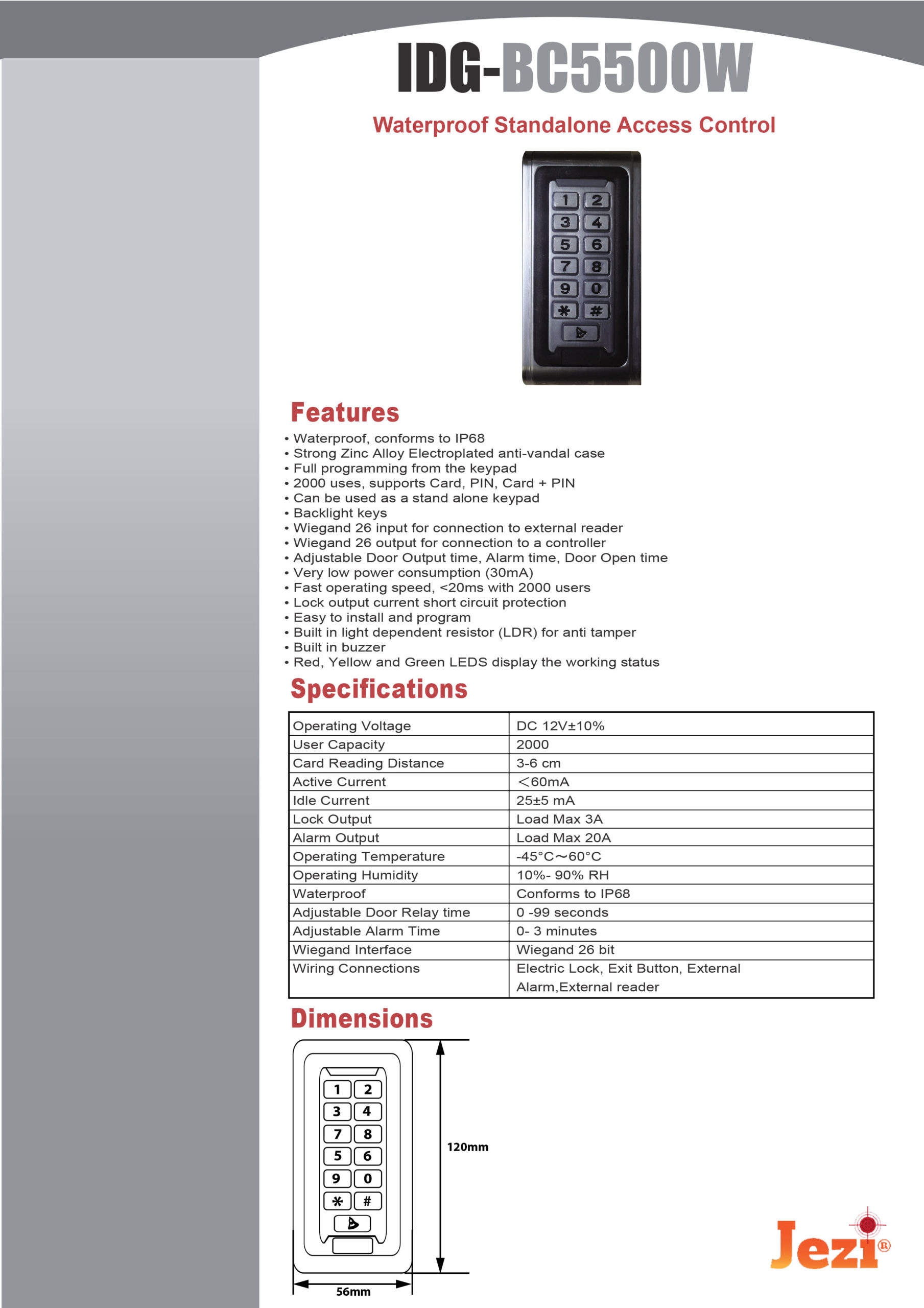 Jezi-IDG-5500W Waterproof Standalone Door Access Control