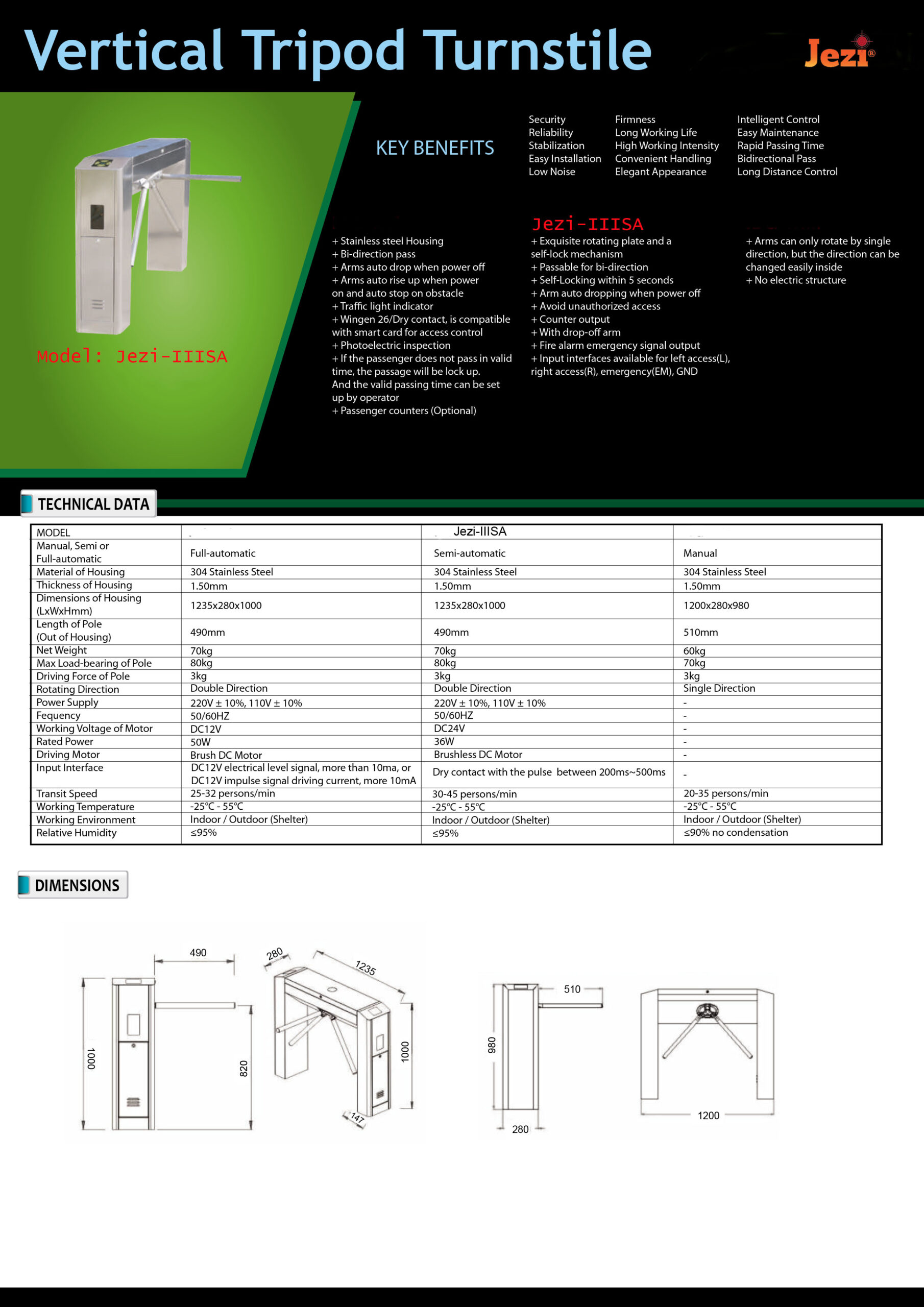 Jezi Vertical Tripod Turnstile